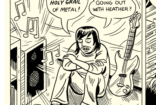 If you're in Portland, you may wanna drop by the Pony Club Gallery on Thursday night. I've got some stuff in the show "Satan is Real: images from the age of hysteria." The show's theme is like, the Eighties and back when people were freaked out about lyrics and imagery in heavy metal and movies and stuff. And backmasking. What was all that about? So the show will have a couple of unpublished comics pages (original art) from a new story that I'm working on with Jeff Wilson. What? Eighties and heavy metal? Yeah. Also on display will be an Iron Maiden scene I did for Electric Ant magazine. So yeah, if you meet the criteria (a. are in Portland; b. feel like it), swing by and check it out.
